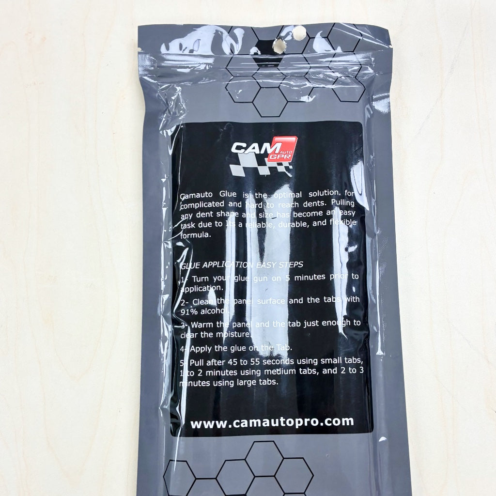 CAMAUTO PRO COLLISION GLUE es un pegamento de alta resistencia probado en todas las formas y tamaños de abolladuras y en todas las condiciones climáticas, desde el frío extremo hasta el calor extremo, y desde la humedad extrema hasta la sequía extrema.